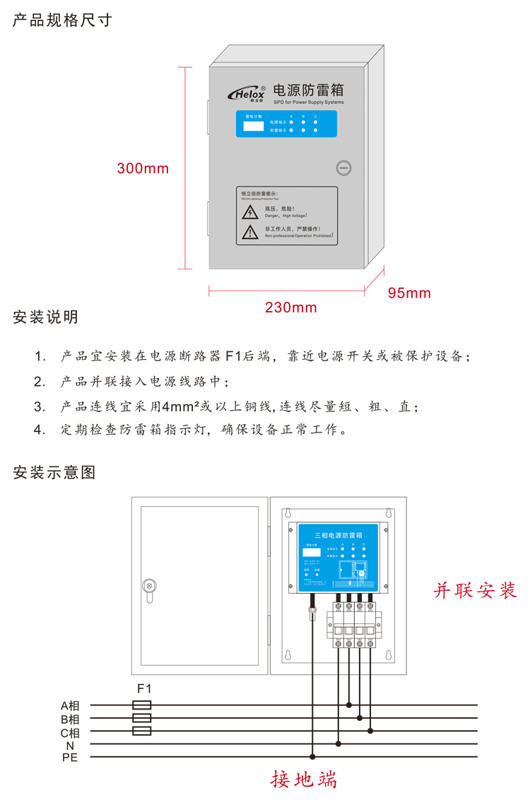 恒立信PPS系列三相电380V电源防雷箱(20kA-200kA) T2 HM 带雷电计数器