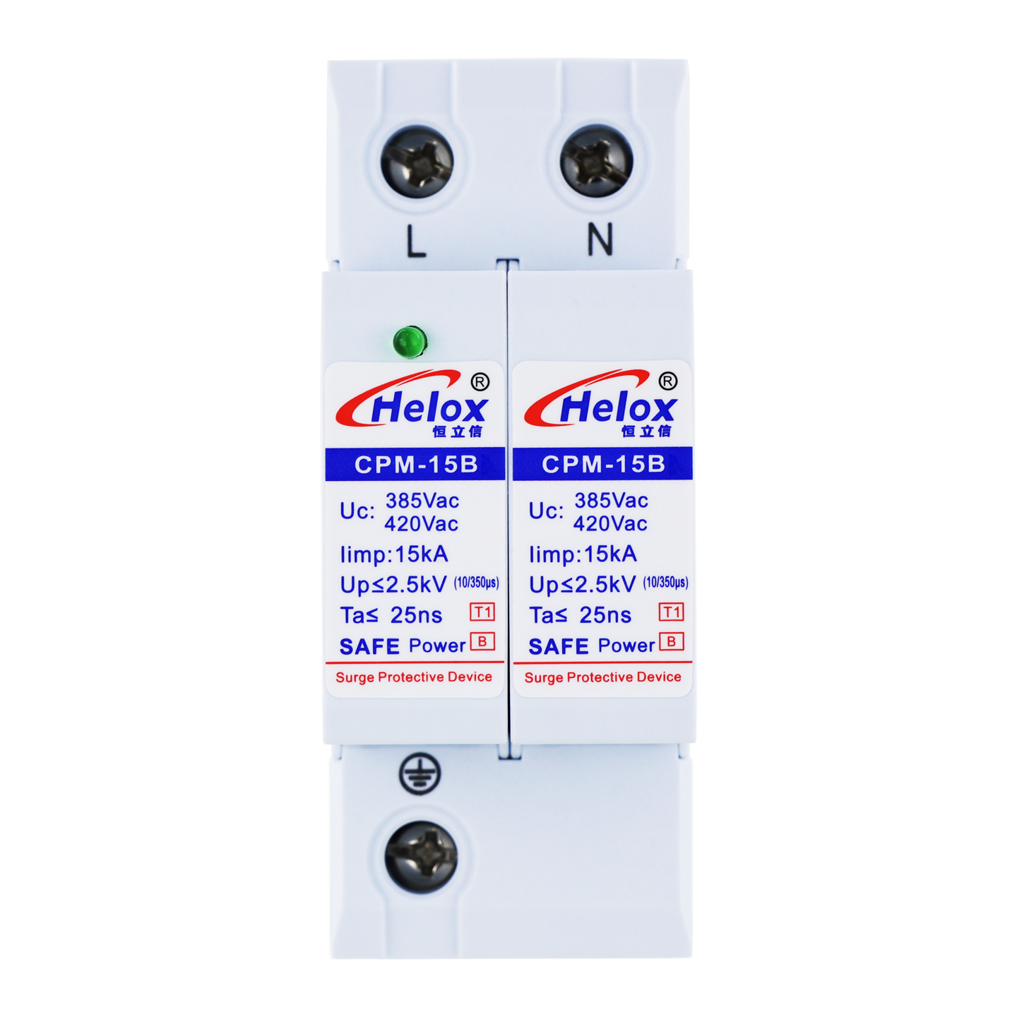 恒立信单相电220V一级电源防雷模块(12.5kA-120kA)2P T1试验 2.5kV 420V CPM-*B 指示灯