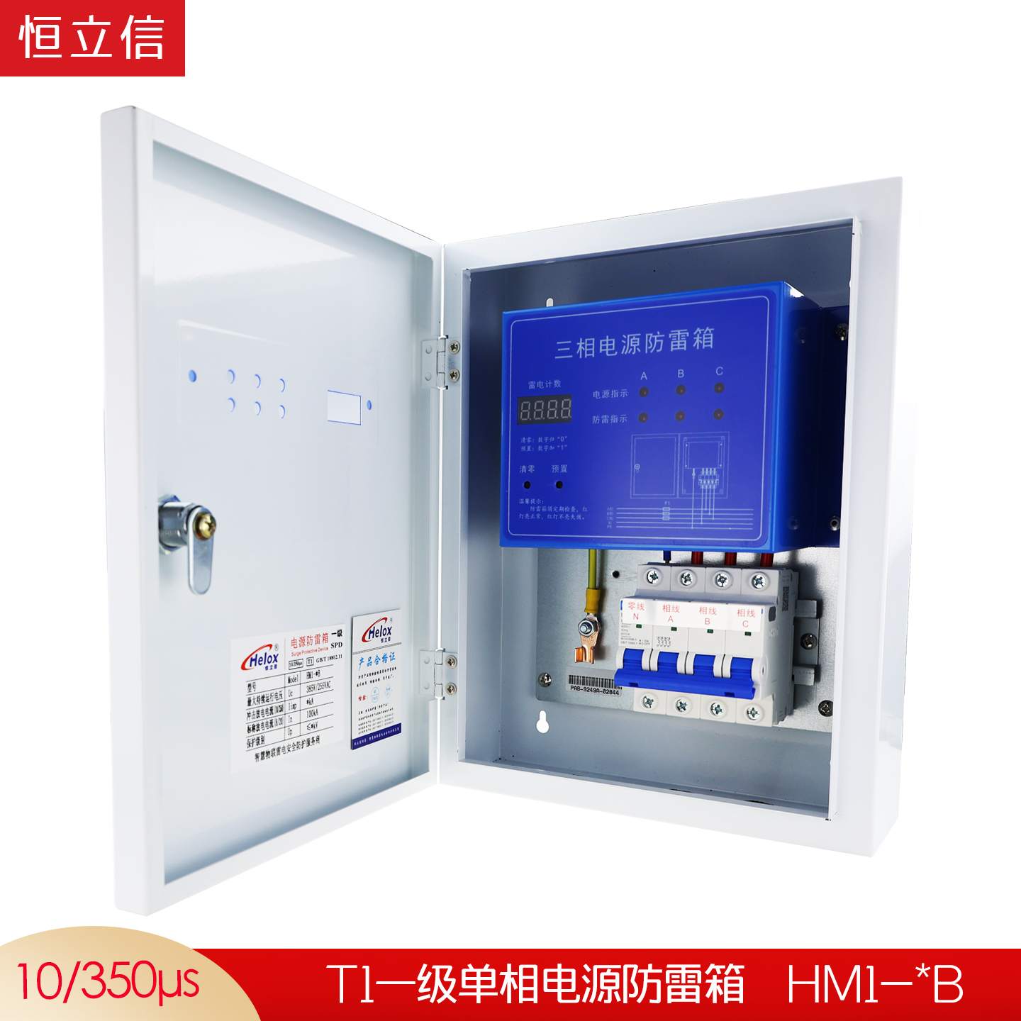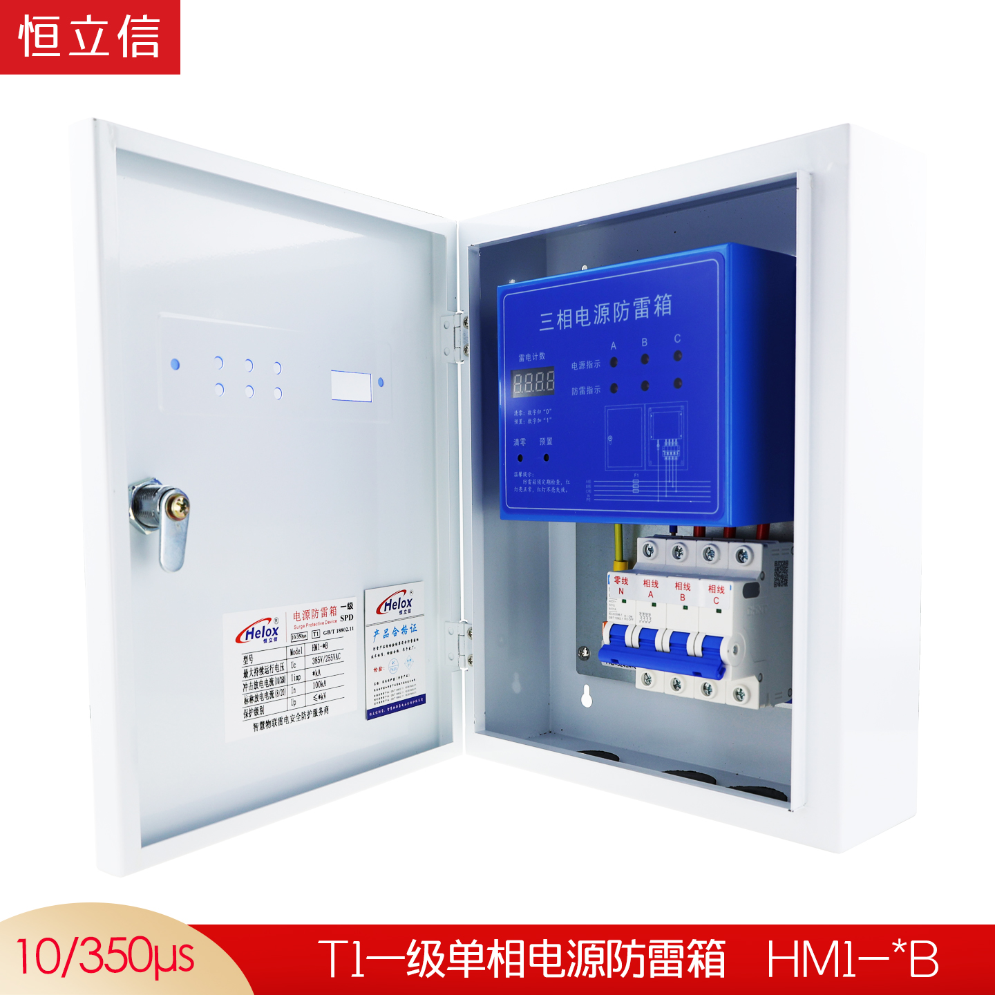恒立信单相电220V一级电源防雷箱(12.5kA-200kA)T1试验 V-*B