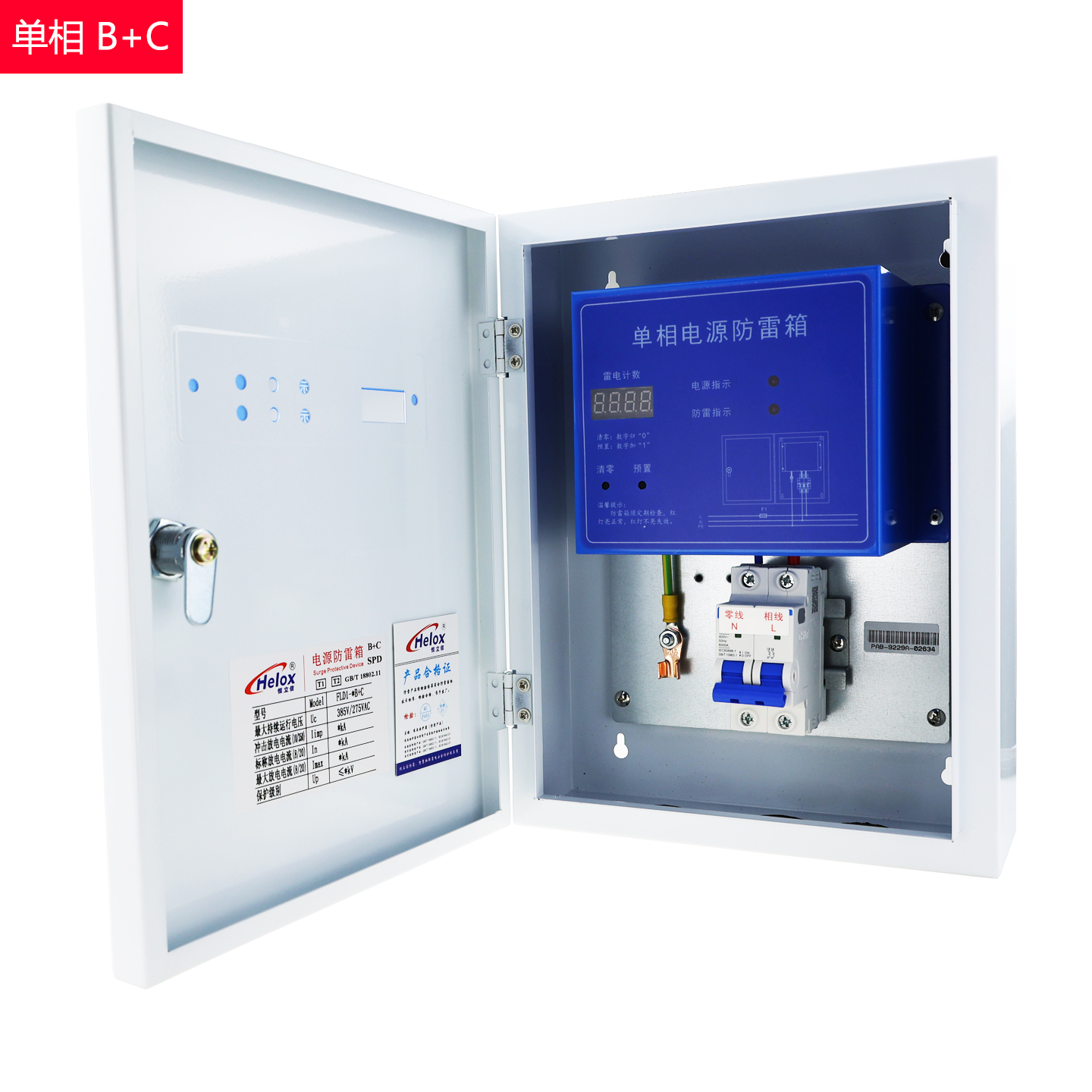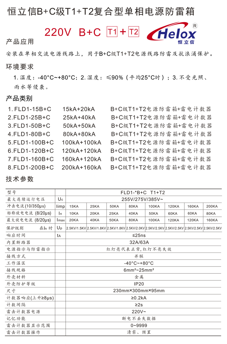 恒立信单相电220V B+C级电源防雷箱(15kA-200kA) T1+T2 一级和二级 FLD1-B+C