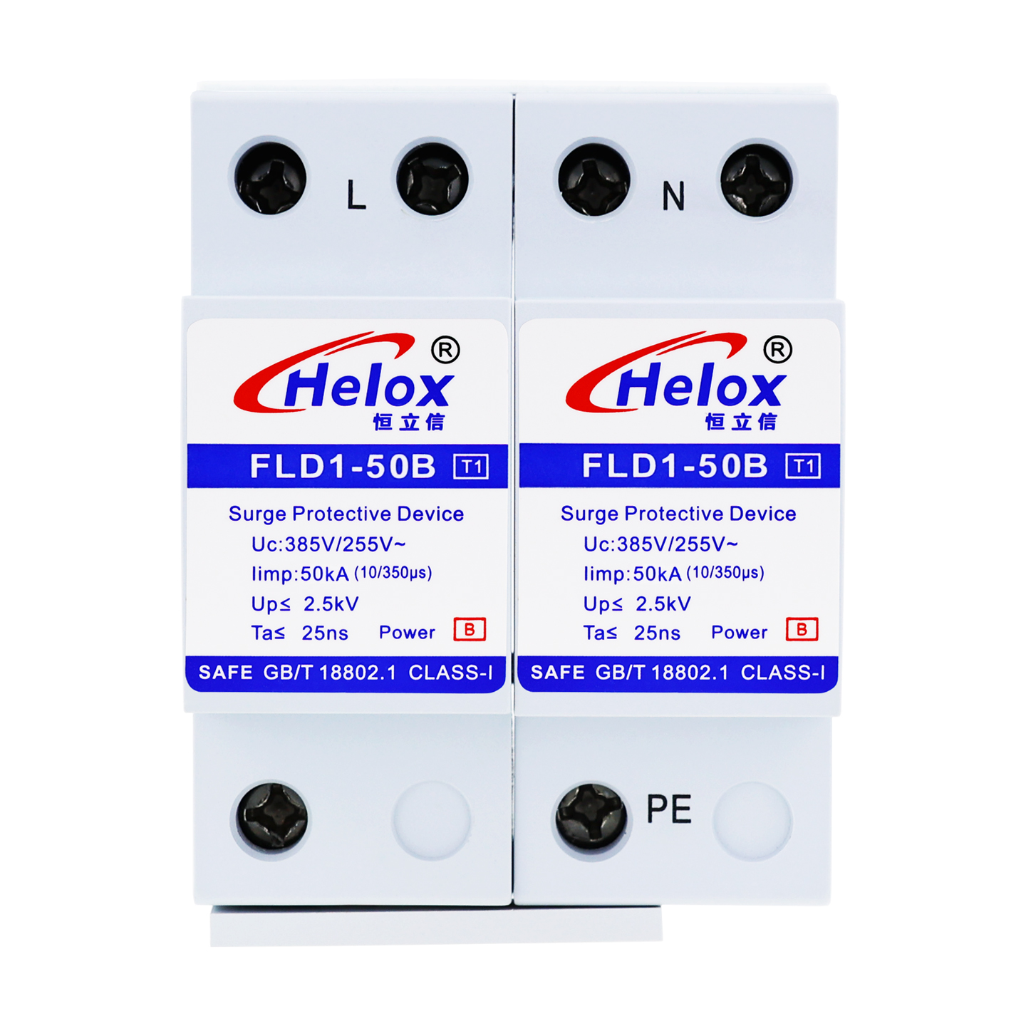恒立信单相电220V一级电源防雷模块(12.5kA-120kA)2P T1试验 2.5kV 18mm FLD1-*B