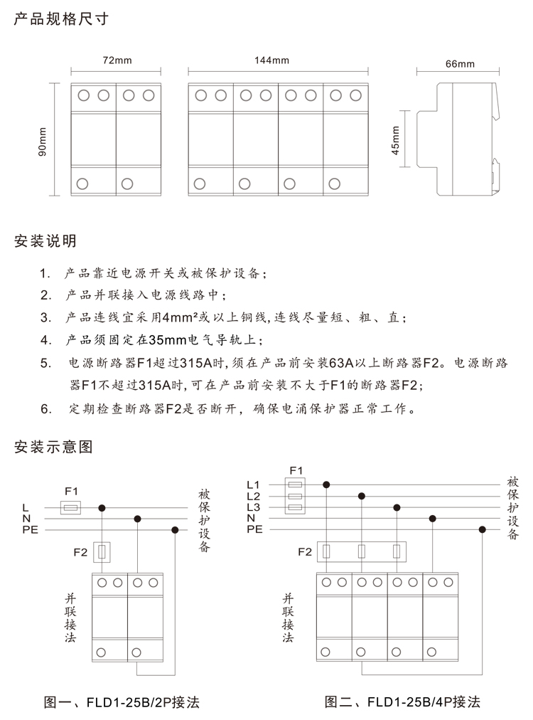 恒立信单相电220V一级电源防雷模块(12.5kA-120kA)2P T1试验 2.5kV FLD1-*B