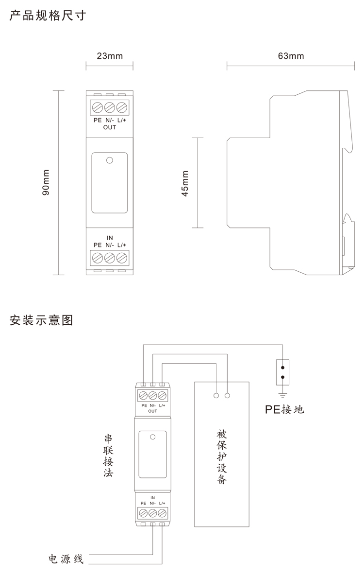 恒立信白色导轨串联高负载交直流电源浪涌保护器(5V~24V)1ns 10kA 5A DY-PRO