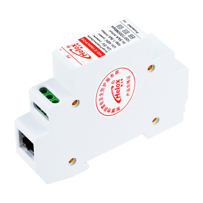 恒立信白色导轨百兆网络POE信号浪涌保护器 10kA 100M RJ45-E100/POE