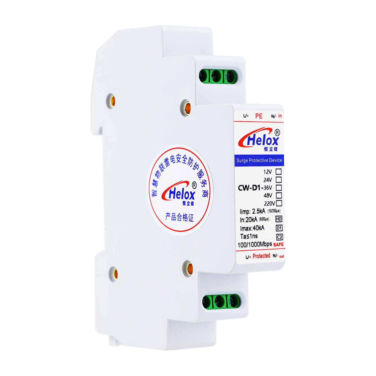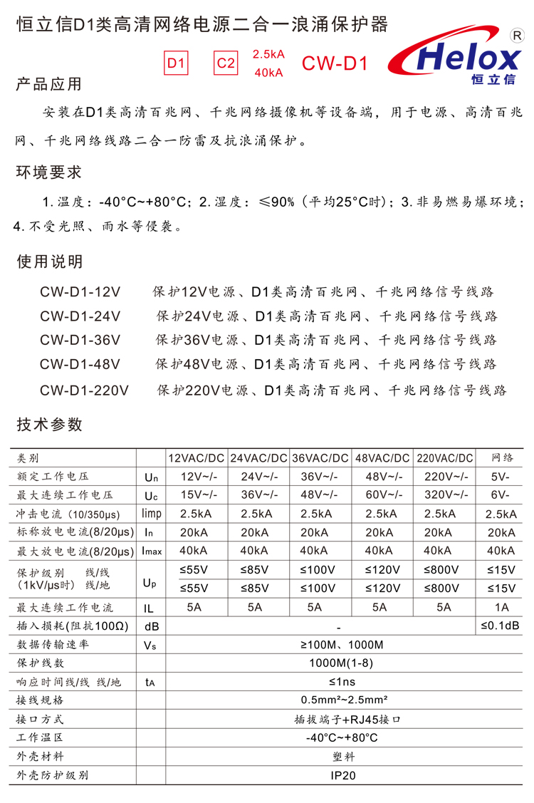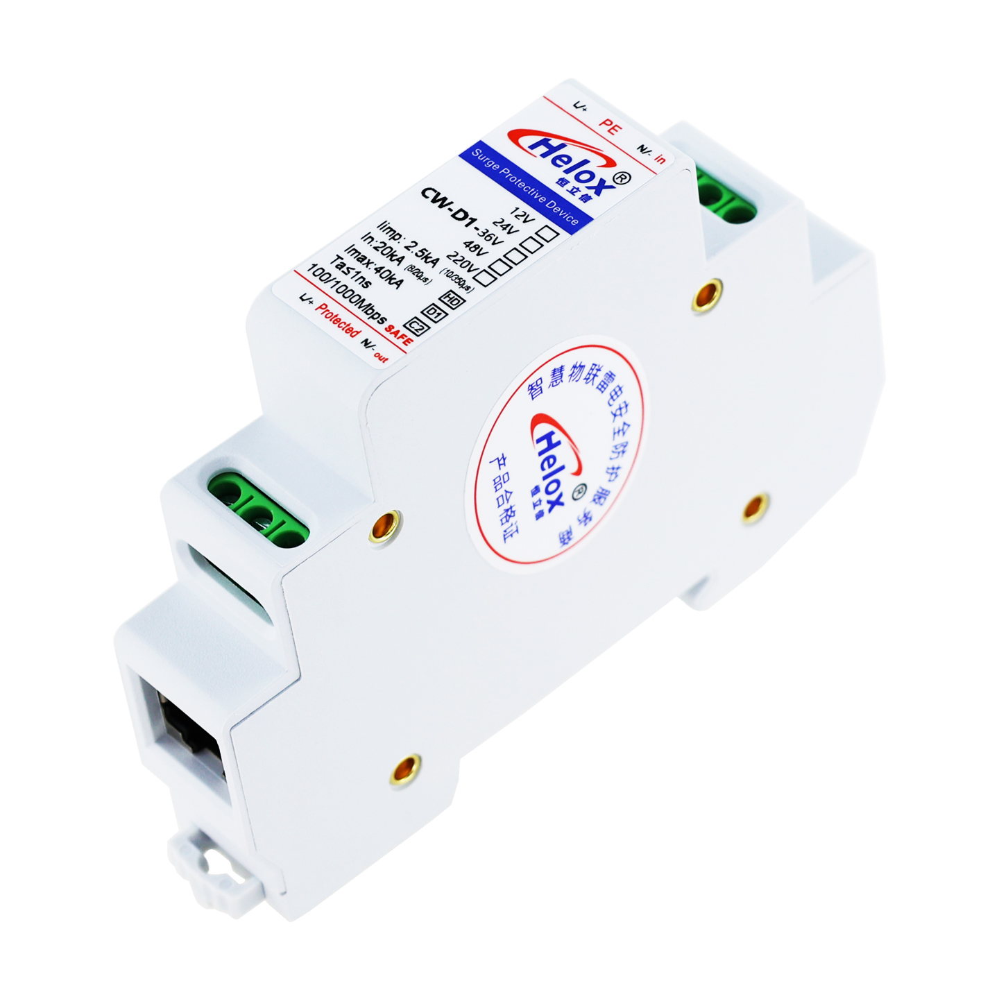 恒立信D1类高清千兆网电源二合一浪涌保护器(12V~220V) 1000M 40kA CW-D1