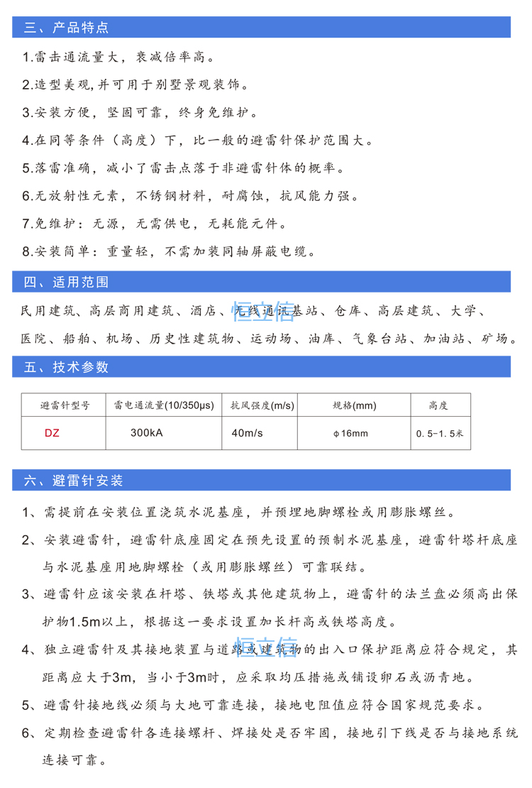 恒立信单针避雷针 直径32*51mm(3米-6米) 304不锈钢