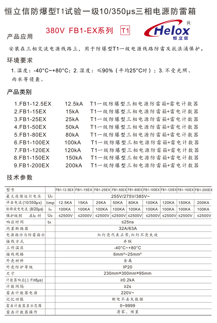 恒立信单相220V一级防爆型电源防雷箱(12.5kA-200kA) T1 FB1-*EX