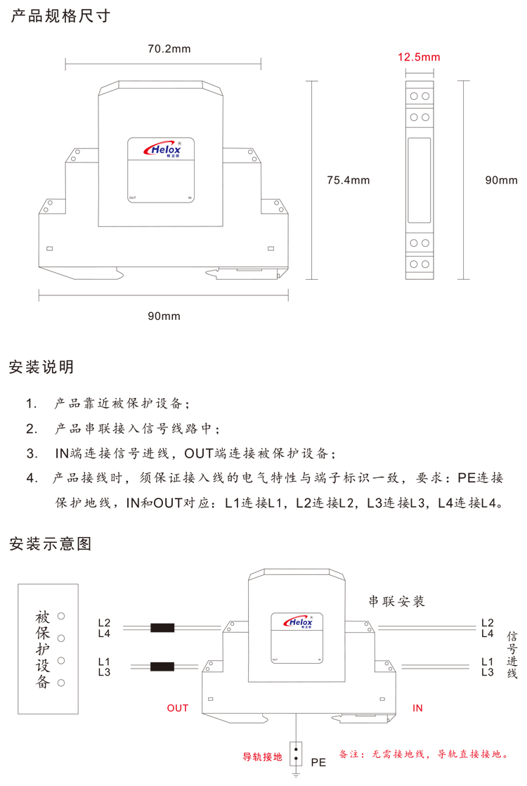 恒立信4线控制信号浪涌保护器(5V、12V、24V) 40kA XH40 PRO MAX