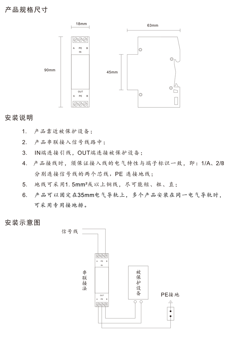 恒立信2线白色导轨高速率RS485控制信号浪涌保护器5V 10kA RS485-5V