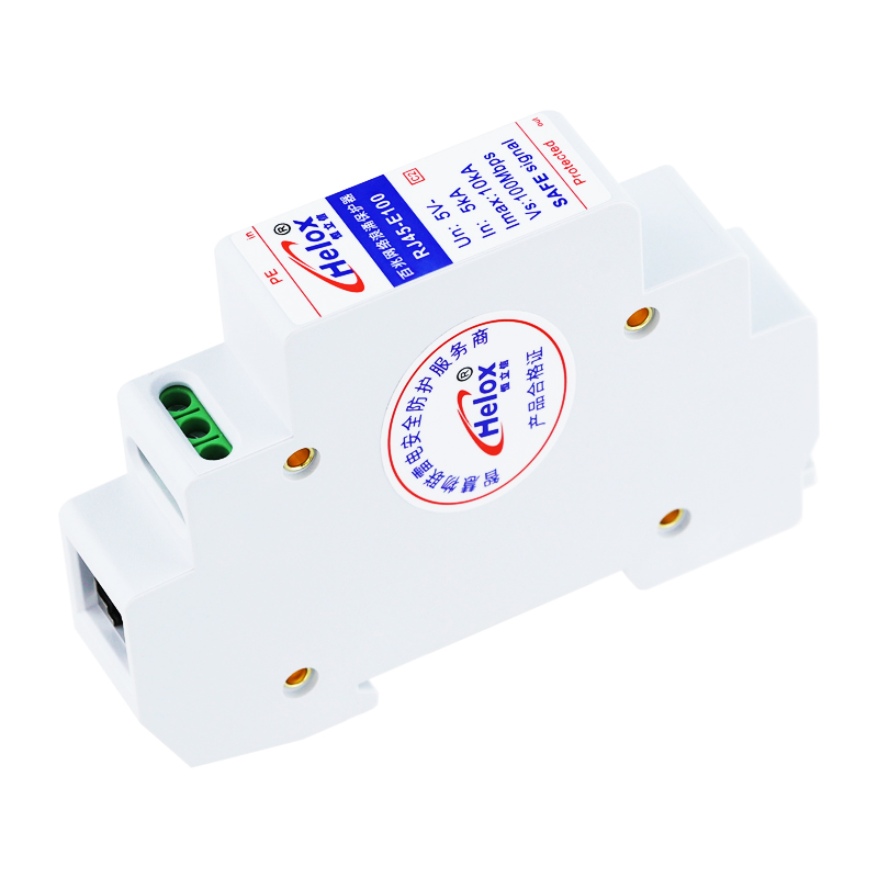 恒立信白色导轨百兆网络信号浪涌保护器 10kA 100M RJ45-E100