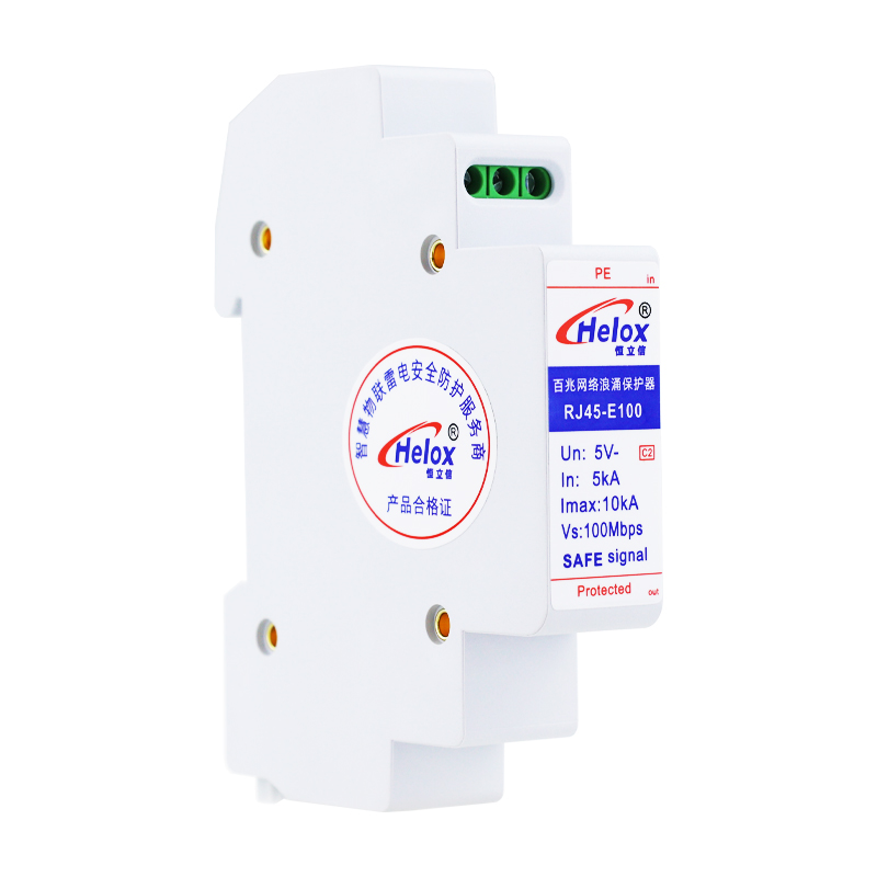 恒立信白色导轨百兆网络POE信号浪涌保护器 10kA 100M RJ45-E100/POE