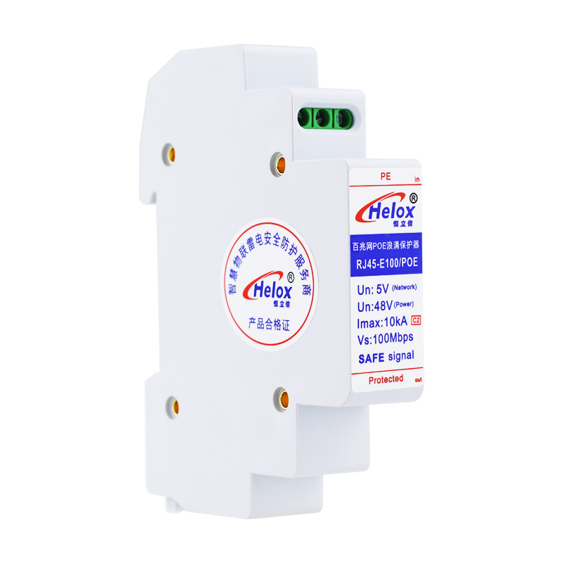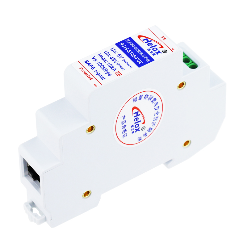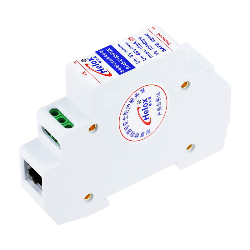 恒立信白色导轨百兆网络POE信号浪涌保护器 10kA 100M RJ45-E100/POE