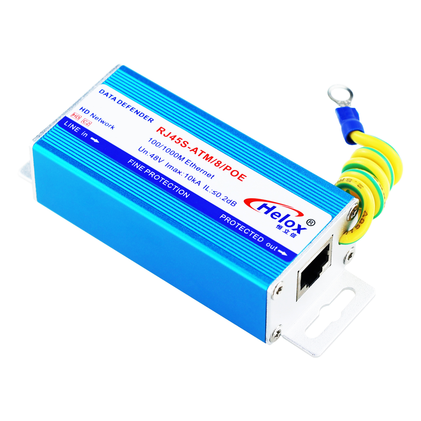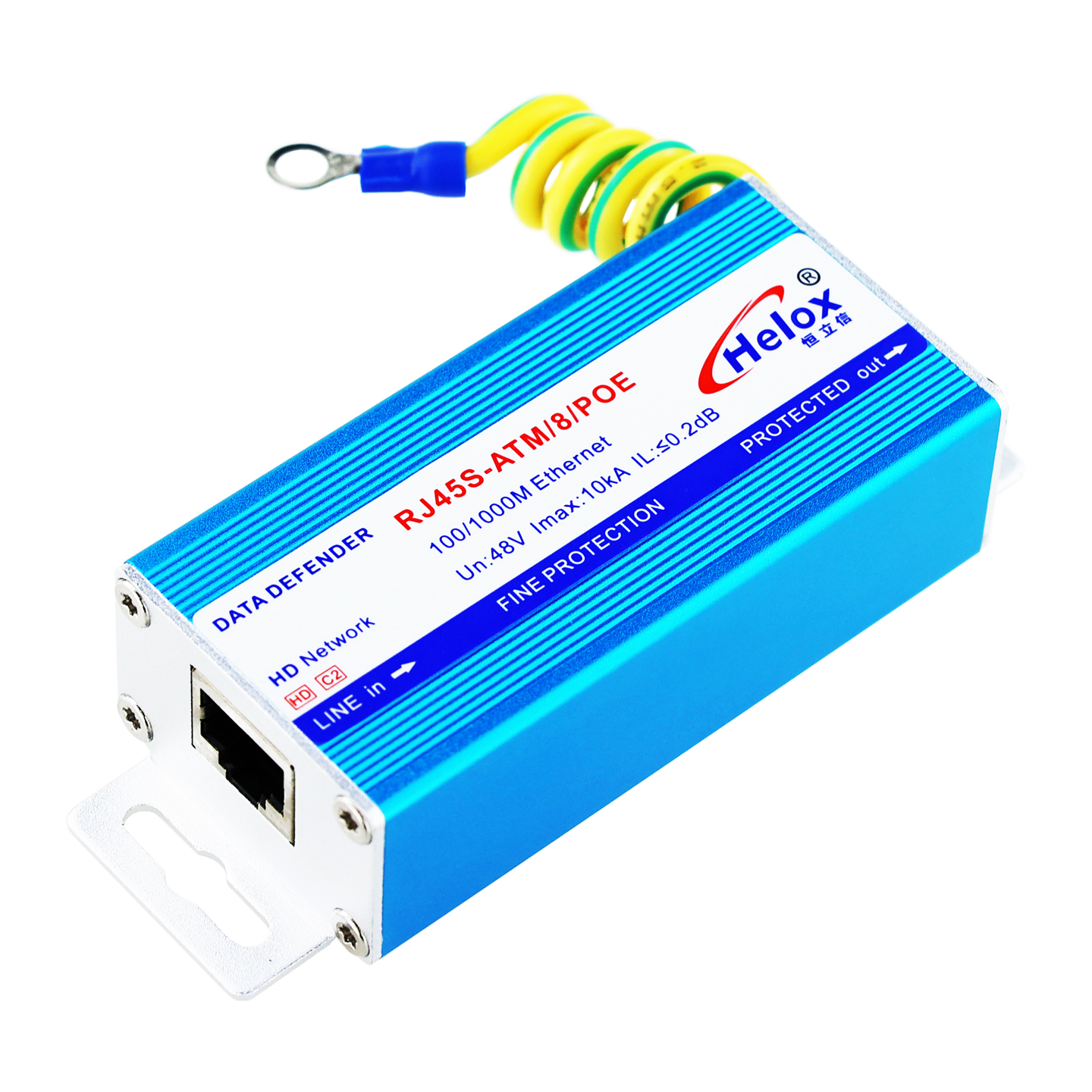 恒立信蓝色铝合金千兆网络POE信号浪涌保护器 10kA 1000M RJ45S-ATM/POE