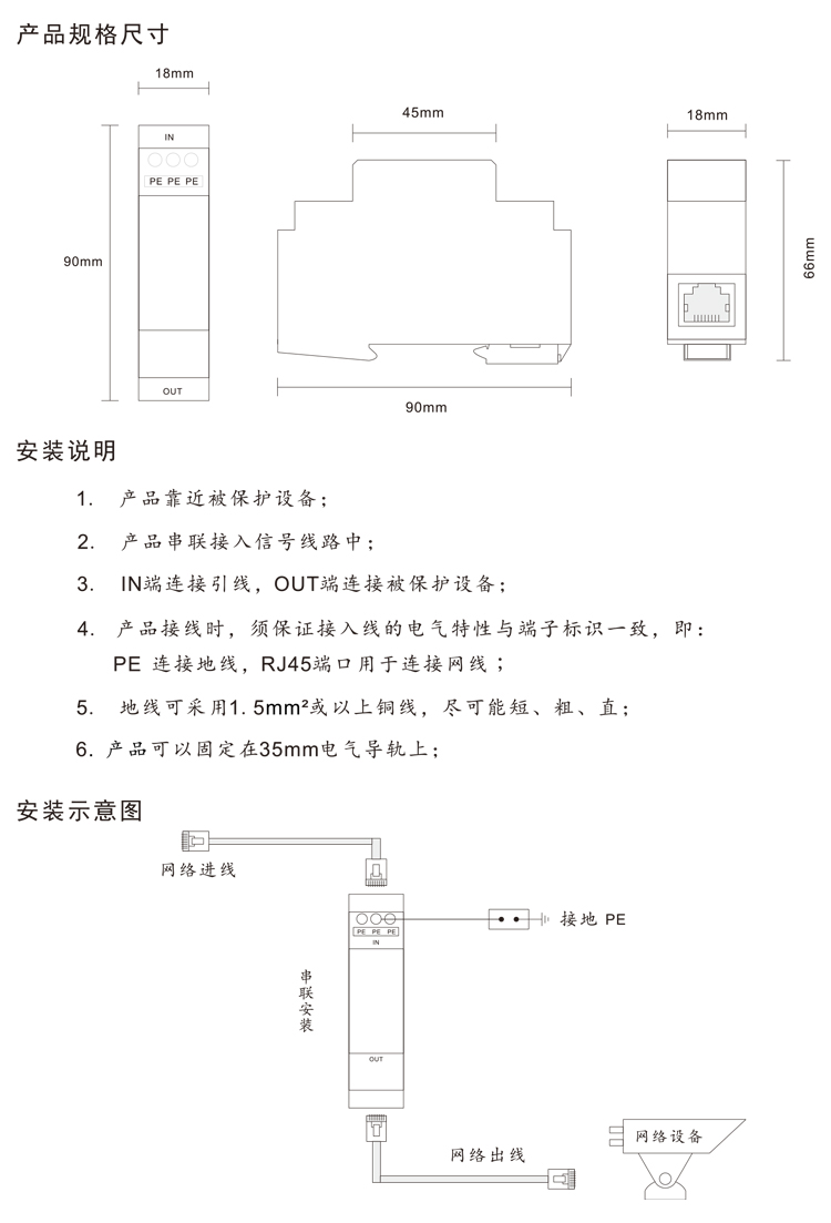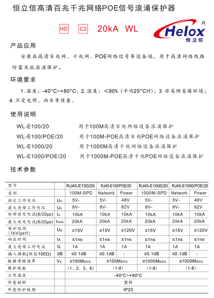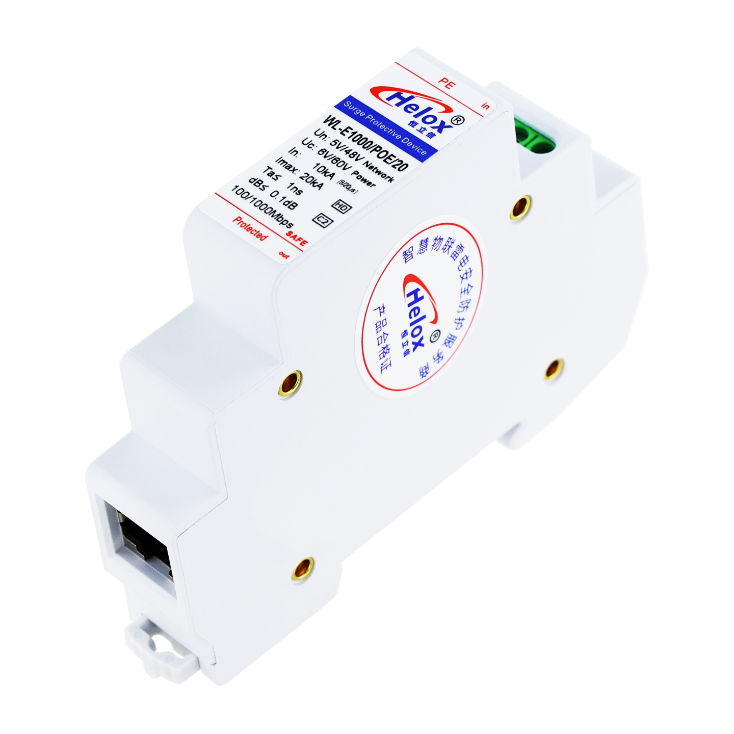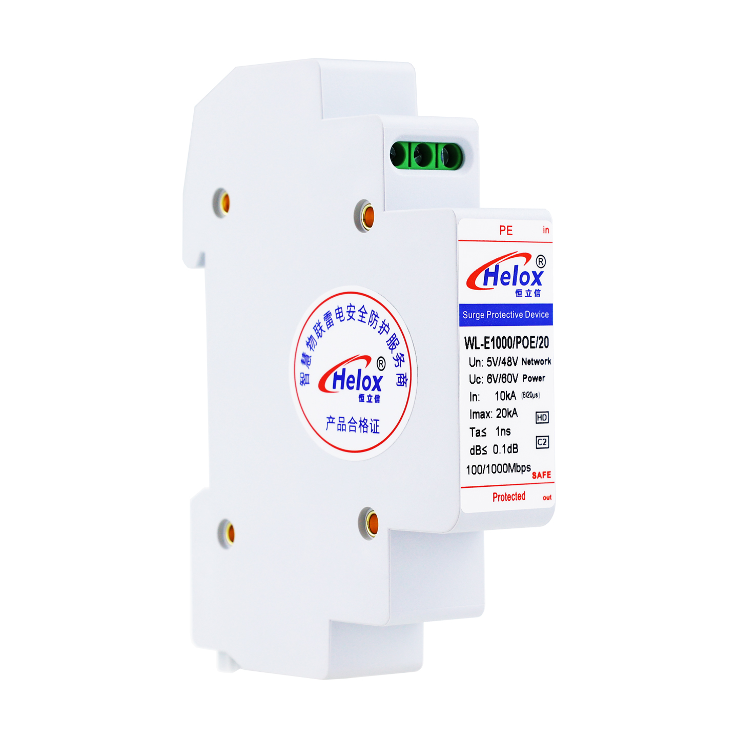 恒立信白色导轨高清千兆网络POE信号浪涌保护器 20kA 1000M 1ns WL-E1000/POE/20