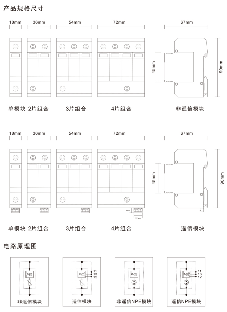 恒立信新能源单相电220V电源防雷模块 T2 2P Uc:420V、385V PV系列