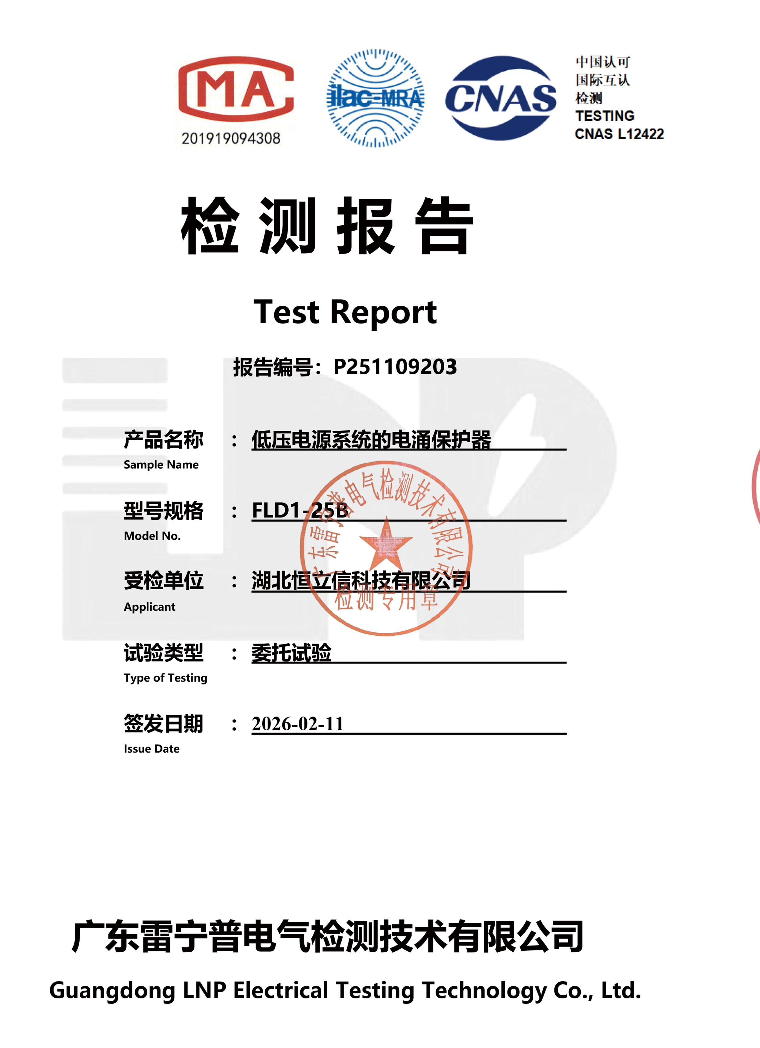 检测报告-FLD1-25B T1一级电源浪涌保护器