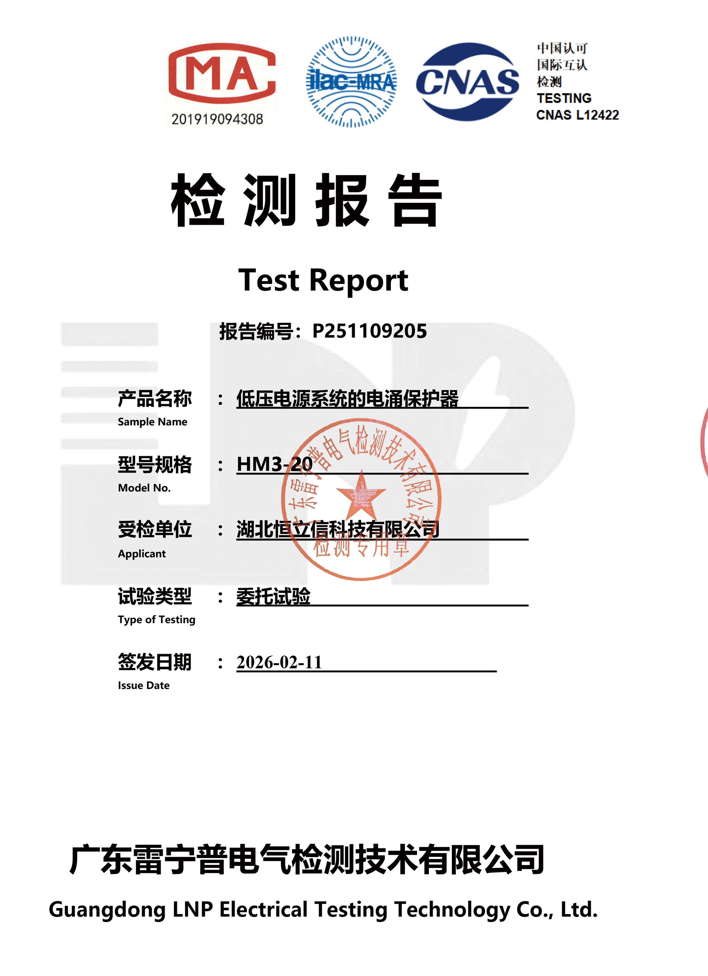 检测报告-FLD1-25B T1一级电源浪涌保护器