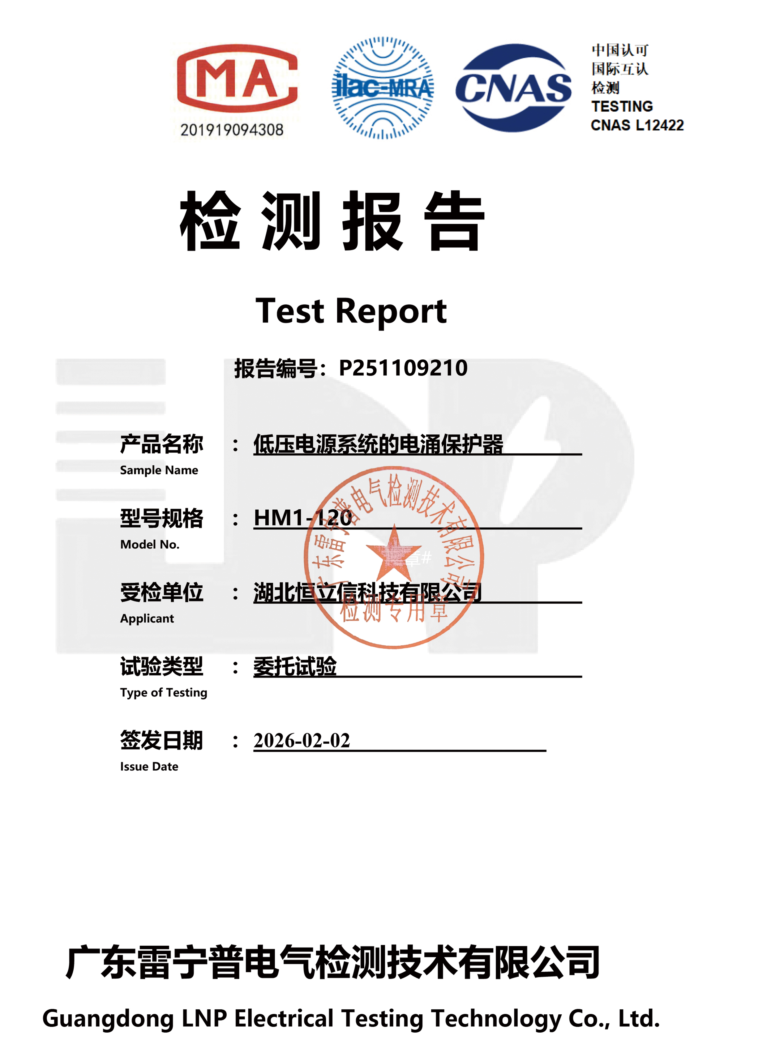 检测报告-HM1-120电源浪涌保护器