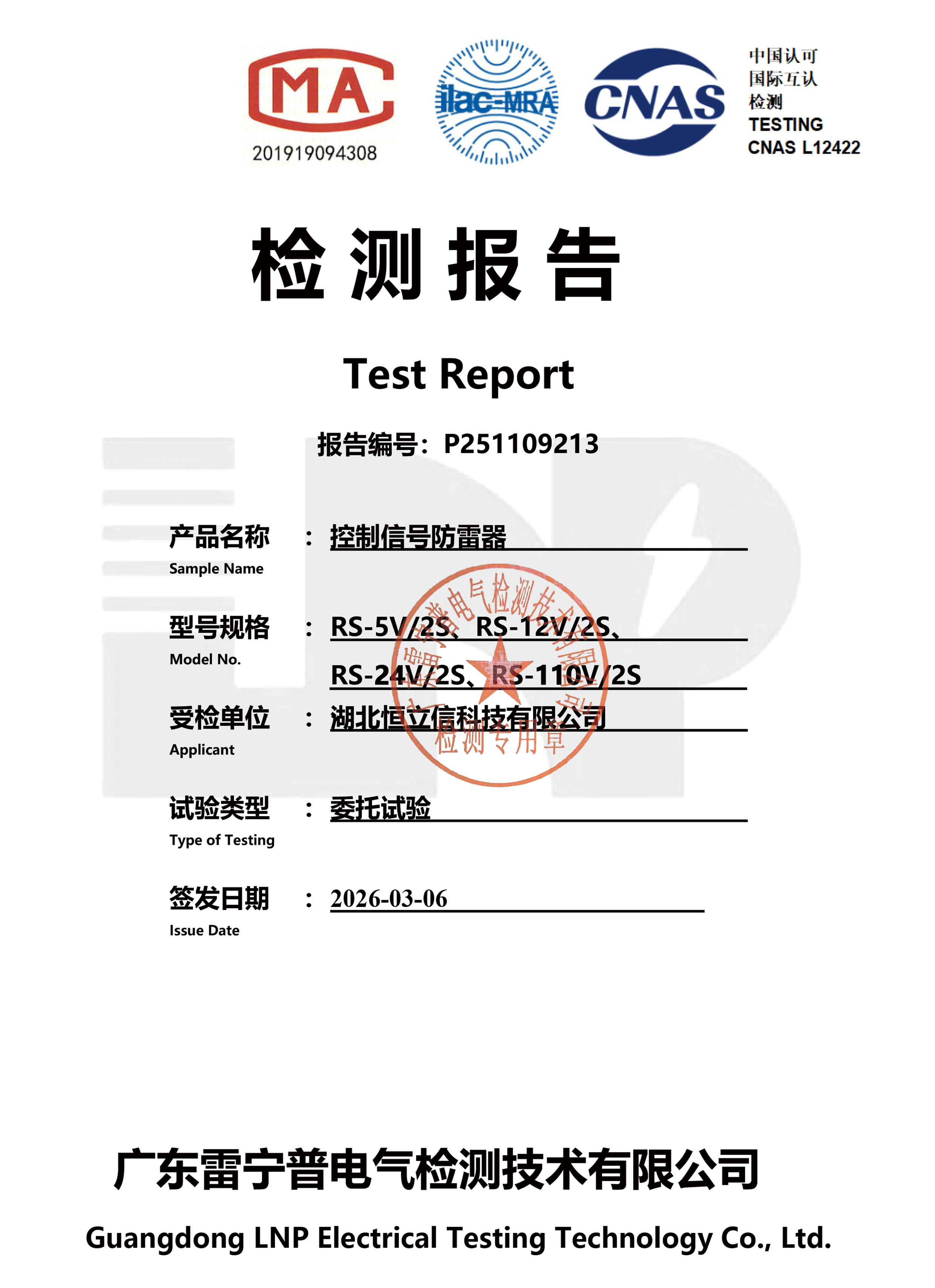 检测报告-RS-5V-2S RS-12V-2S RS-24V-2S RS-110V-2S控制信号浪涌保护器