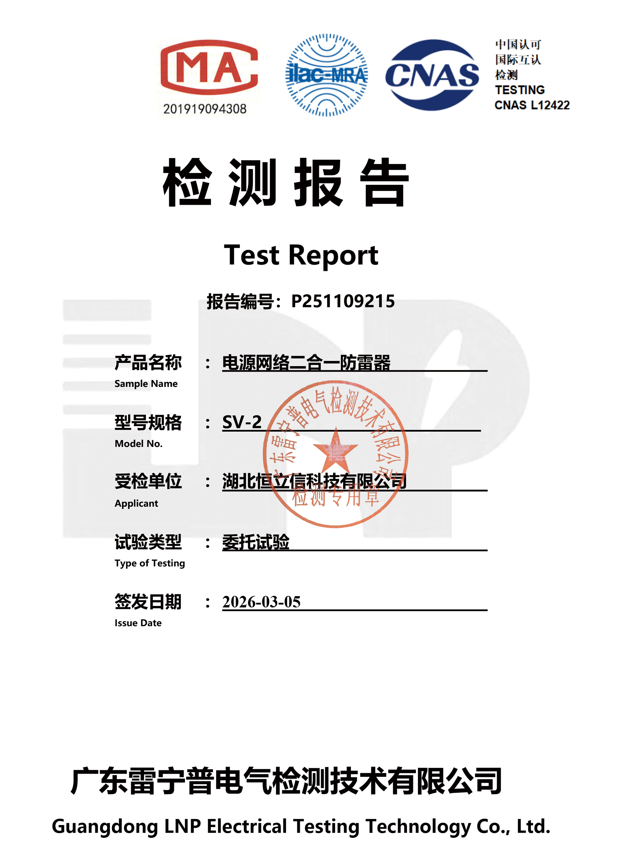 检测报告-SV-2 百兆网二合一 千兆网二合一浪涌保护器